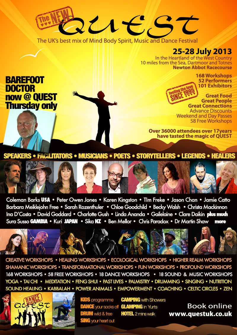Rumi Master Coleman Barks USA • Peter Owen Jones • Karen Kingston • TIm Freke • Jason Chan • Jamie Catto • Barbara Meiklejohn Free • Sarah Rozenthuler • Chloe Goodchild • Becky Walsh • Christa Mackinnon • Joe Hoare • Ina D’Costa • David Goddard • Charlotte Gush • Theresa Sansome • Linda Ananda • Gailelaine • Treesisters’ Clare Dakin and many more